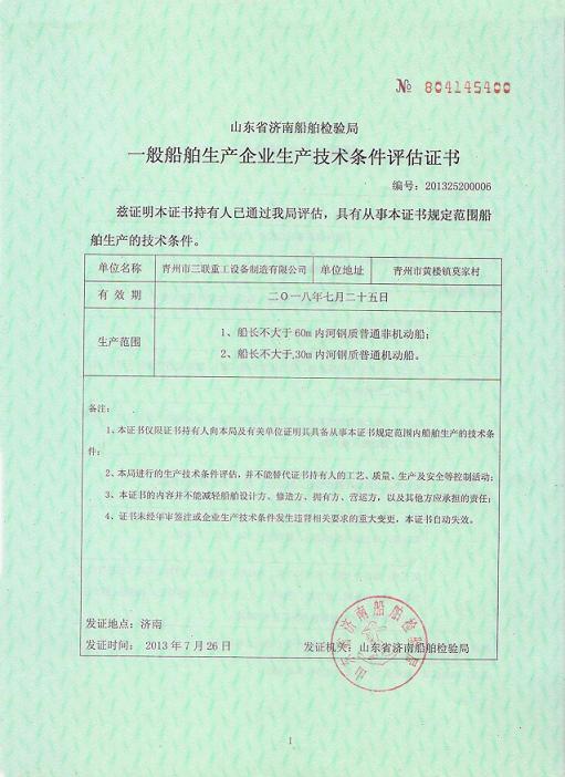 • 船舶制造許可證書反面